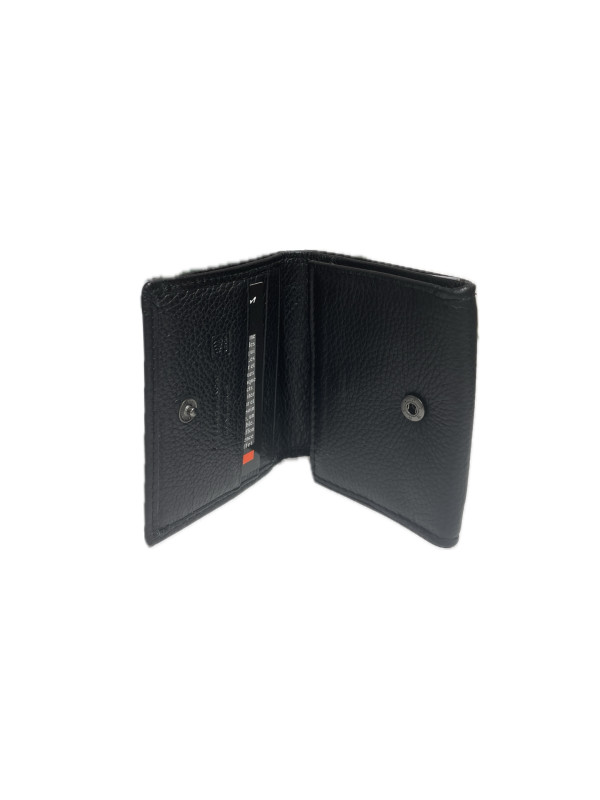Dispose de 3 emplacements cartes format carte bancaire, une poche monnaie fermé par un pression et une poche billets.