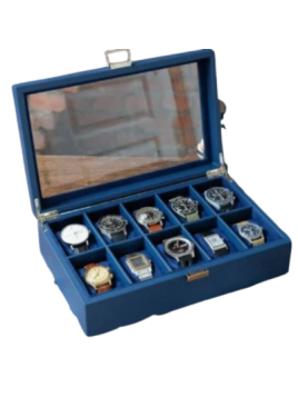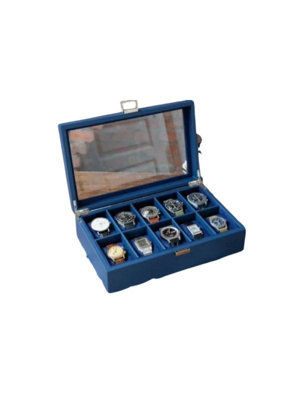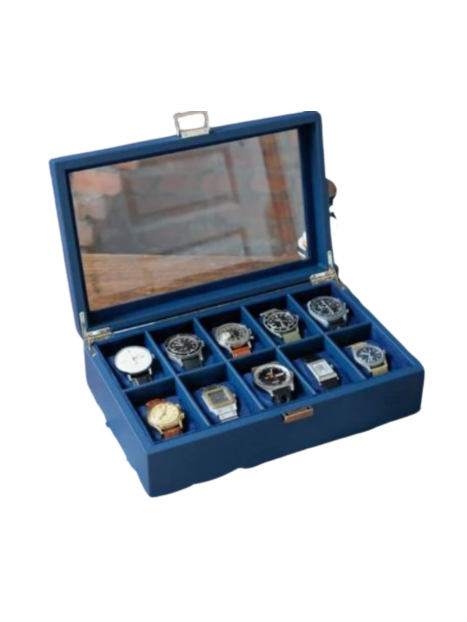 Elle peut contenir 10 montres, couvercle vitré.