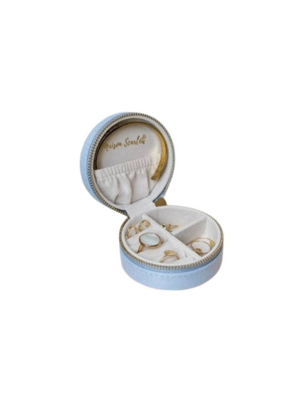 BOITE A BIJOUX FORMAT VOYAGE ref YVONNE MAISON SCARLETT velours bleu ciel