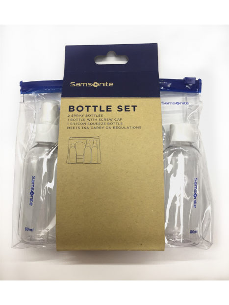 Ces flacons de transport sont de chez SAMSONITE.