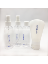 Cet ensemble se compose de quatre flacons ainsi que d'une pochette transparente pour les ranger.