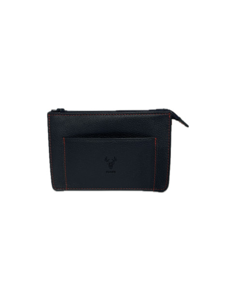 Pochette ceinture 35 583 Grainee FRANDI vachette foulonnee marine fil rouge