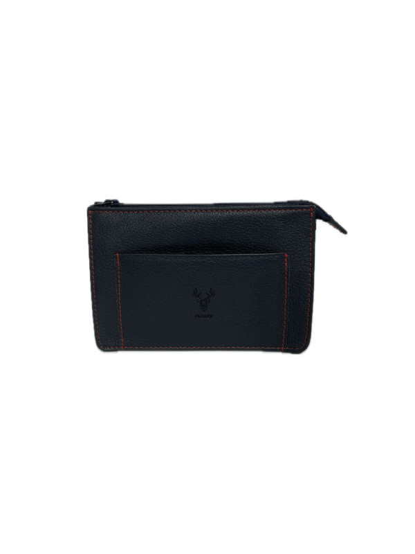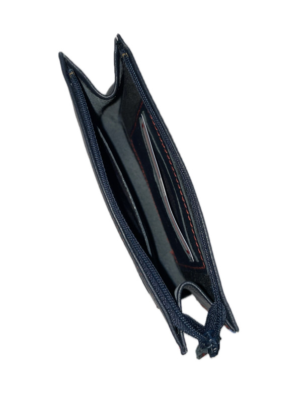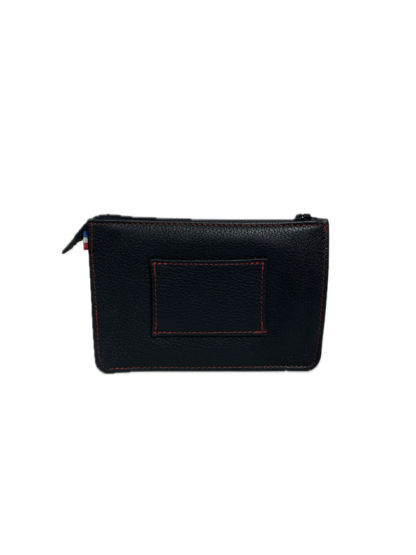 Compartiment principal zippé, avec à l'intérieur 4 emplacements format carte bancaire. Une poche plaquée sur l'avant.