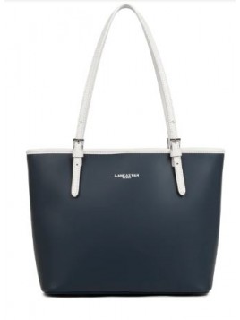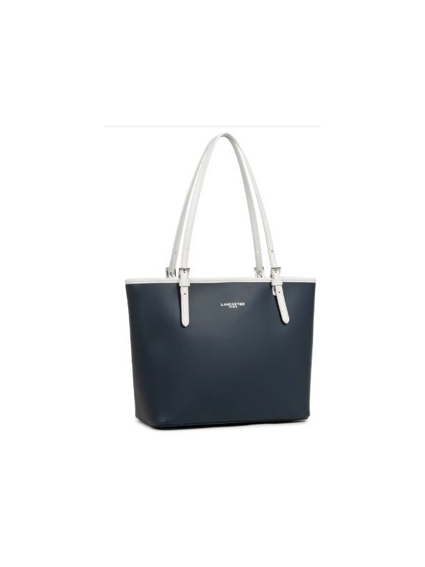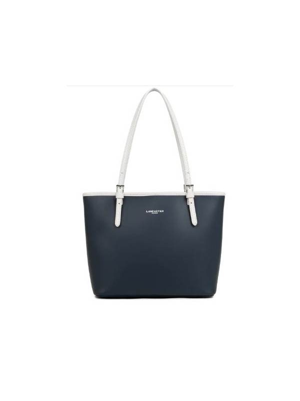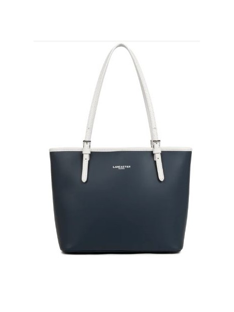 Sac LANCASTER de la ligne SMOOTH refente cuir de vachette bleu fonce ecru