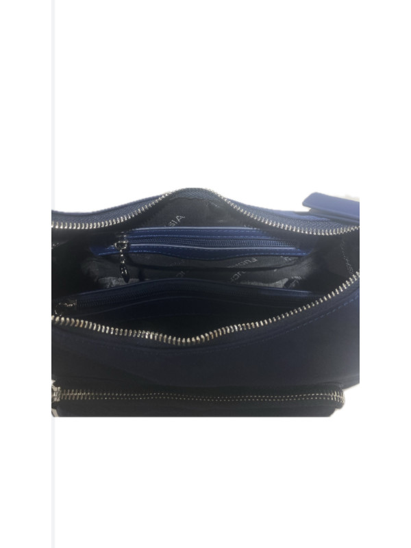 Compartiment principal fermé par un zip, à l'intérieur on y trouve deux poches zippées dont une centrale et deux poches simples.