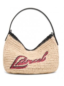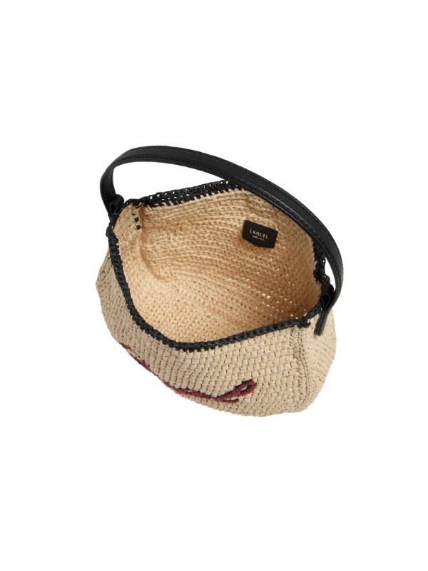 Sac LANCEL de la ligne Summer Mania papier et cuir de vachette naturel noir