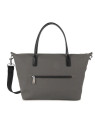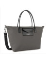 Sac shopping Lancaster toile enduite garnie cuir gris fonce